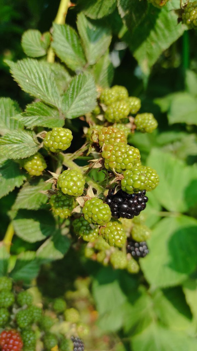 Начала созревать ежевичка! Гроздей много👍 тьфу - тьфу! С этими дождями всё гниёт😔 Ежевика созревает тоже неравномерно. Да как и все ягоды в принципе. А так слишком было бы хорошо и удобно... пошел, собрал сразу всю 🍓🍒🍑🍇 - наелся, наварил варенья и всё отдыхай! Жди следующий год. Ну нет, так мы заскучаем! 😄 Поэтому созревает всё постепенно.. На ветке сначала одна ягодка спеет, затем потихоньку другие🤗