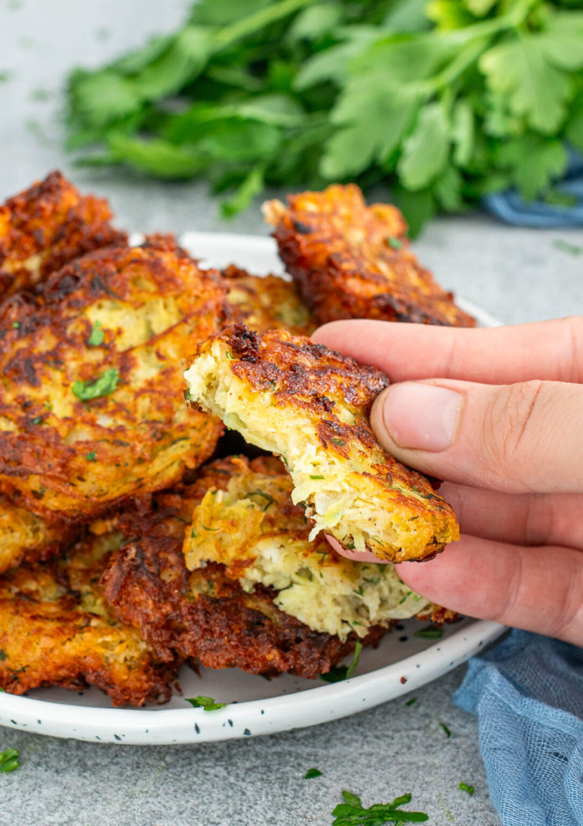 Фрикадельки из кабачков - это простой и вкусный рецепт, идеально подходящий для наслаждения здоровой и хрустящей закуской, простой в приготовлении и по вкусу каждому. Кабачки средние, тертые на терке: Кабачки – основа этого рецепта, придающая фрикаделькам мягкую и сочную текстуру. Их легкий вкус прекрасно сочетается с другими ингредиентами. Соль: Соль помогает извлекать лишнюю воду из кабачков и усиливает вкус других ингредиентов. Мелкая луковица, мелко нарезанная: Лук добавляет сладости и глубины вкуса, уравновешивая аромат кабачков. Чеснок, мелко нарезанный: Чеснок придает сильную и отчетливую вкусовую нотку, дополняя общий вкус фрикаделек. Яйцо: Яйцо действует как связующее вещество, благодаря чему все ингредиенты хорошо сочетаются, а фрикадельки сохраняют свою форму во время жарки. Сыр фета, раскрошенный: Сыр фета придает соленый и сливочный вкус, усиливая текстуру и вкус фрикаделек. Его можно заменить сыром телемея. Пармезан: Пармезан способствует соленому и сложному вкусу, привно