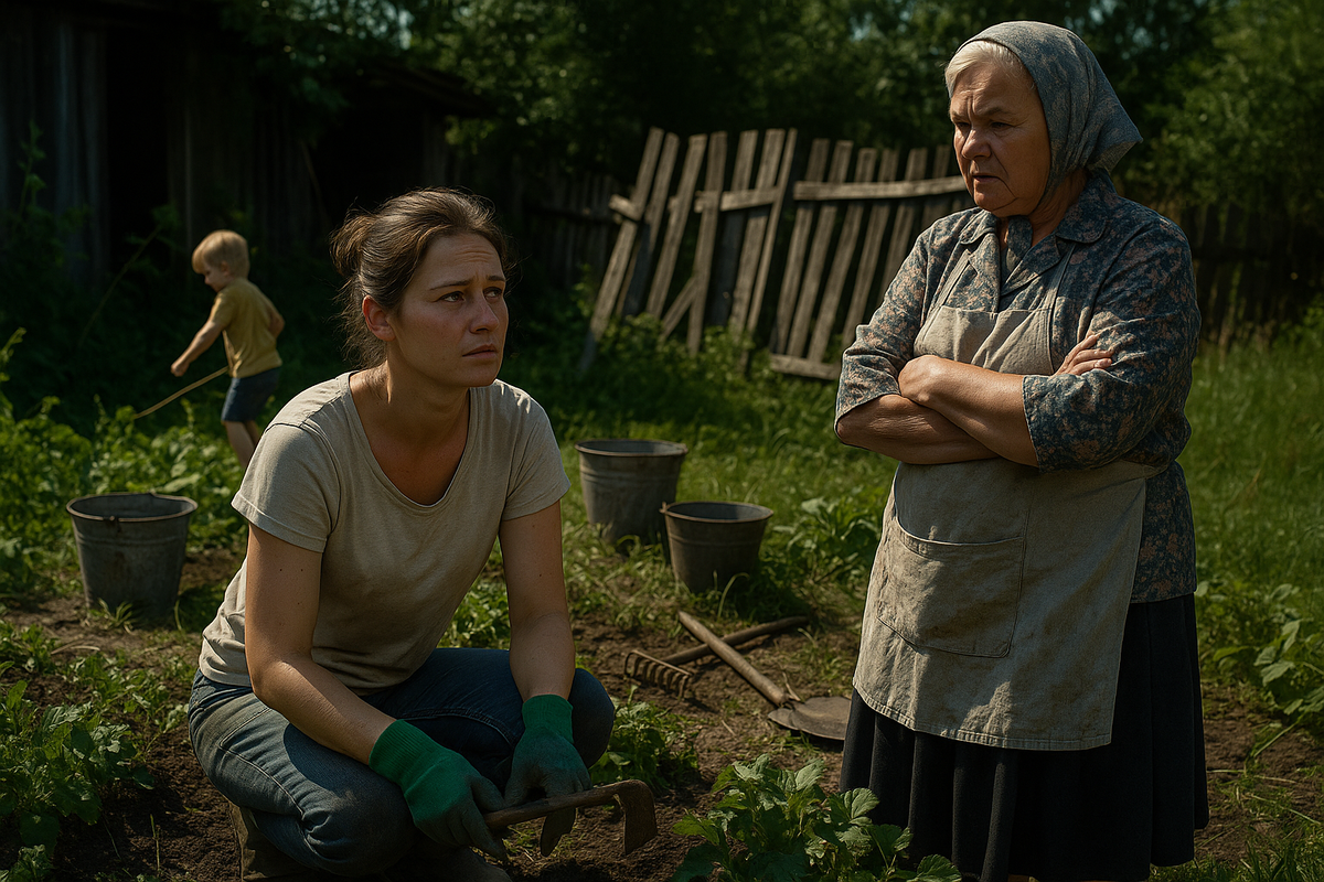 — Внучок мой дорогой! — расцвела свекровь Галина Петровна. — Как соскучились! А ты, Светочка, переодевайся быстрее. Работы на участке — немерено. Картошку окучить надо, лук прополоть. У меня спина совсем не гнётся.
