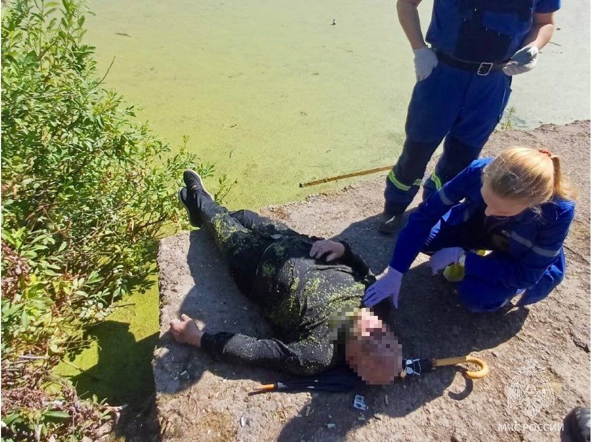 Тонущего мужчину заметила прохожая. Он из последних сил цеплялся за ветки кустов. Из воды его достали прибывшие спасатели.