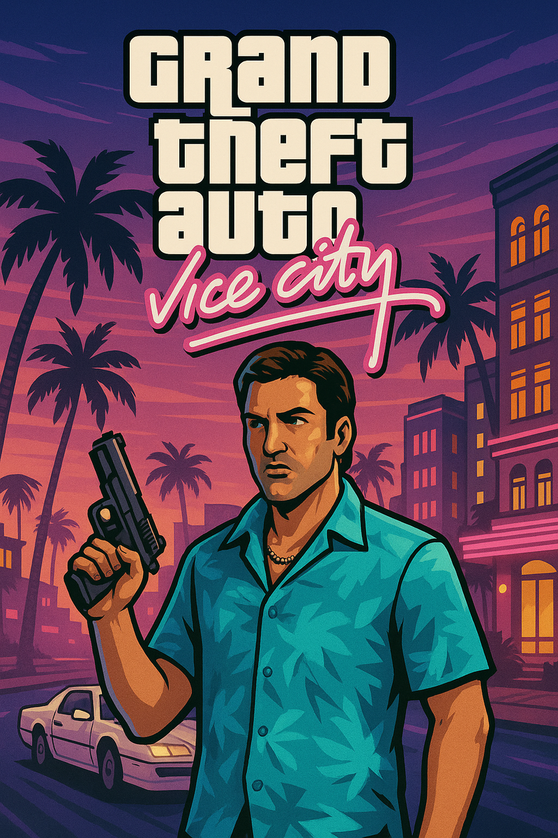 Когда я впервые запустил GTA: Vice City, я понятия не имел, что меня ждёт. Я ожидал что-то похожее на GTA III — немного угрюмый мегаполис, грязные улицы и суровые реалии. Но Vice City сразу же дала мне пощёчину из фуксии, лазури и фанк-гитар.