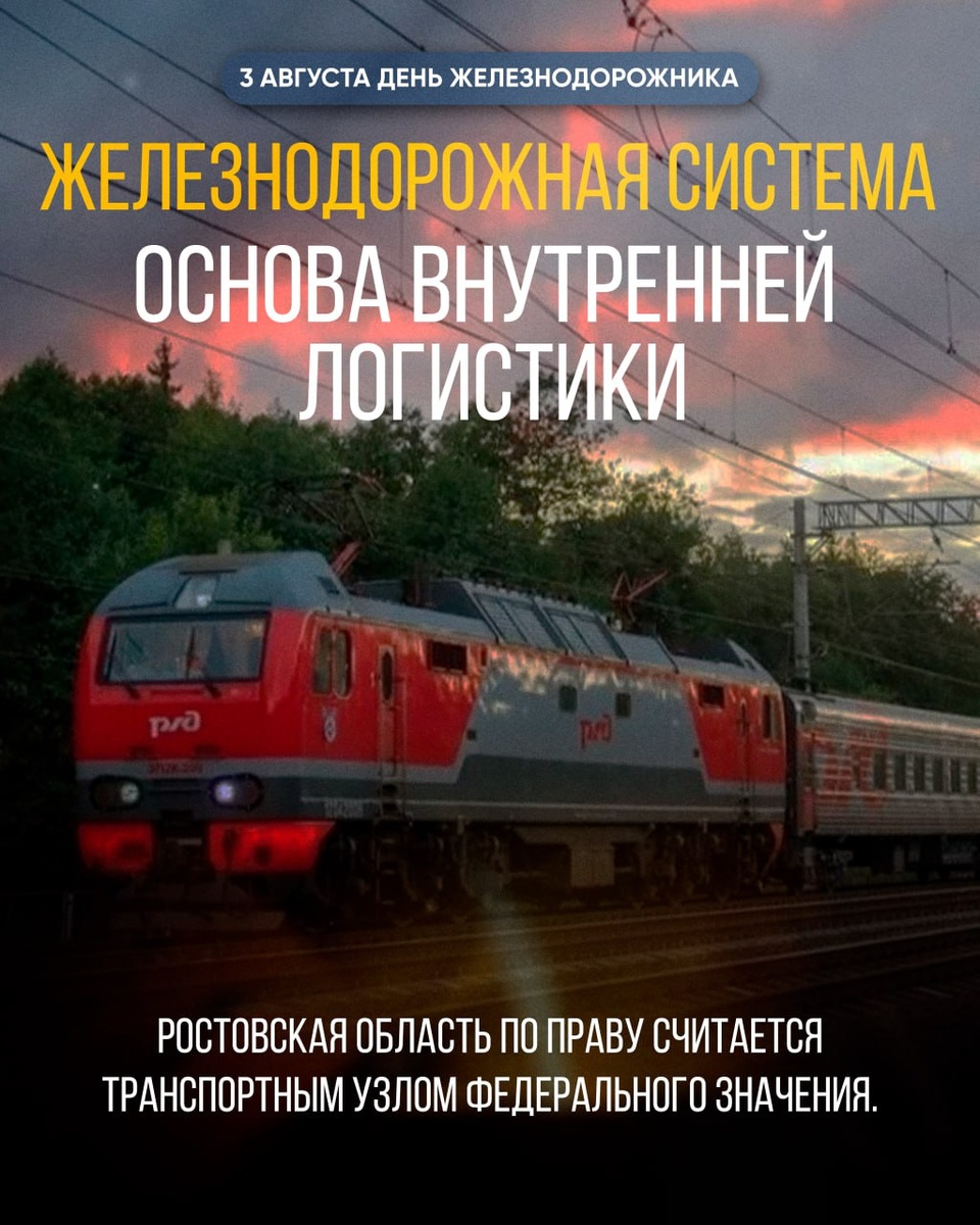 С Днём железнодорожника! 💠 В первое воскресенье августа в России отмечается День железнодорожника — профессиональный праздник людей, от которых зависит стабильная работа транспорта, промышленности и экономики. ✨✨✨ Ростовское региональное отделение ЛДПР поздравляет всех работников железнодорожной отрасли, ветеранов и будущих специалистов с профессиональным праздником. Ростовская область по праву считается транспортным узлом федерального значения. Через регион проходят ключевые железнодорожные магистрали, соединяющие центральную Россию с югом страны. Ростов-на-Дону — важный логистический центр, через который ежедневно проходят десятки пассажирских и сотни грузовых составов. На территории области работают более 12 тысяч железнодорожников. Каждый день они обеспечивают движение поездов, обслуживание путей, безопасность перевозок, погрузочно-разгрузочные работы и техническое сопровождение. 💠 Железнодорожная система — это основа внутренней логистики, экономической устойчивости и стратег