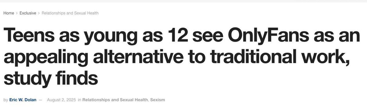 В ответ на пост Некоторые школьники активно используют ChatGPT, чтобы зарабатывать на инвестициях, а кто-то вполне считает OnlyFans перспективной карьерой. Испанские подростки в опросе ответили, что это вполне себе рационально. Интернет и реклама тоже повлияли на результаты — дети признаются, что часто видят посты с историями успеха моделей и различных рекламных агентств. В целом, дестигматизация продажи порнографии в интернете сделала своё дело. Самый богатый человек в мире нанимает для рекламы робота — модель OnlyFans. Что же остаётся детям, которые видят истории успеха таких дам? @lobushkin