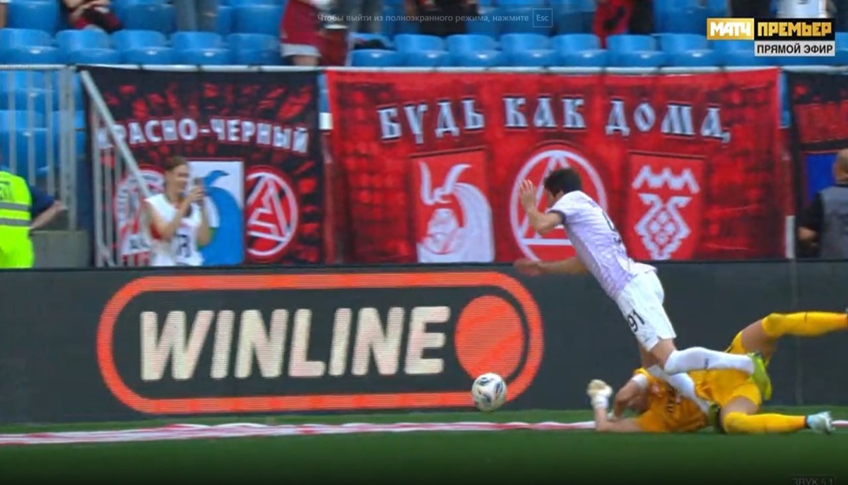 Акрон-Спартак 59 мин. Правильное решение принимает арбитр ВАР Иванов и зовёт Кукуяна на просмотр не назначения 11-м удара. Вратарь не успевает сыграть в мяч и сбивает игрока №91 команды Акрон при это не сыграв в мяч. Сложная игровая ситуация для арбитра, оценка не снижается, но не может быть выше чем 8,4