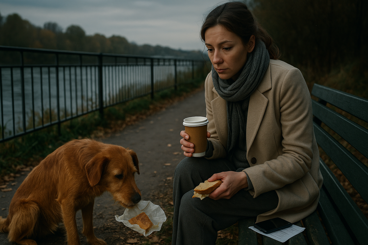 Собака осторожно подошла ближе. Марина положила на пакет нетронутый гамбургер. Животное ело аккуратно, с благодарностью. Даже картошкой поделилась.