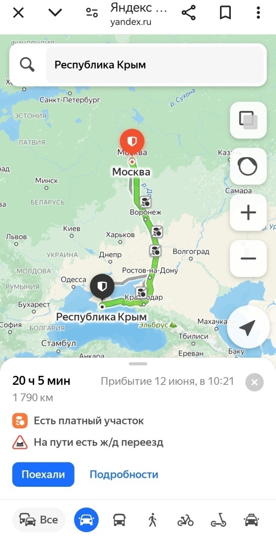 Доброго времени суток Всем читателям и гостям. Сегодня я расскажу вам о нашей спонтанно решенной поездки в Крым, а точнее в город Алушта Крымского полуострова. Наше путешествие состоялось в этом году в июле. В этом году в июле в Москве было не сильно жарко и очень хотелось летнего солнышка и тепла. И вот в один из семейных вечеров от старшего сына прозвучала идея : "А почему мы не поедем в Крым?" - спросил он. И мы задумались, а почему бы и нет?). Решение было принято моментально, но вид транспорта конечно же совсем не был выбран. Посмотрев авиа и жд билеты, мы решили ехать на собственном автомобиле, так как это показалось самым лучшим вариантом. Погрузив нужные вещи, взяв в дорогу немного еды и напитков и проложив наш маршрут путешествия в навигаторе, мы отправились в дорогу. Я не буду сильно подробно рассказывать через какие города мы проезжали на своём пути, но скажу, что в целом наша дорога заняла около 25 часов, так как мы иногда останавливались в кафешках и заправках, чтобы пере
