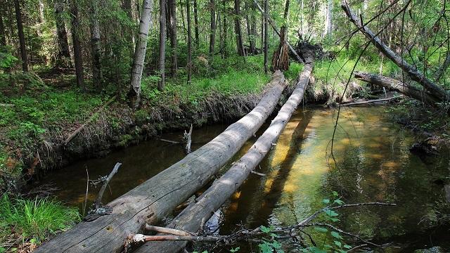 Я сходил посмотреть, где можно пройти, чтобы не идти по щебёнке железной дороги. В лесу я заметил набитую тропу и, вернувшись к ждущей меня старушке. Свои вещички пришлось поднять под густые лапы ели, чтобы лесные зверушки не позарились на неожиданную находку.