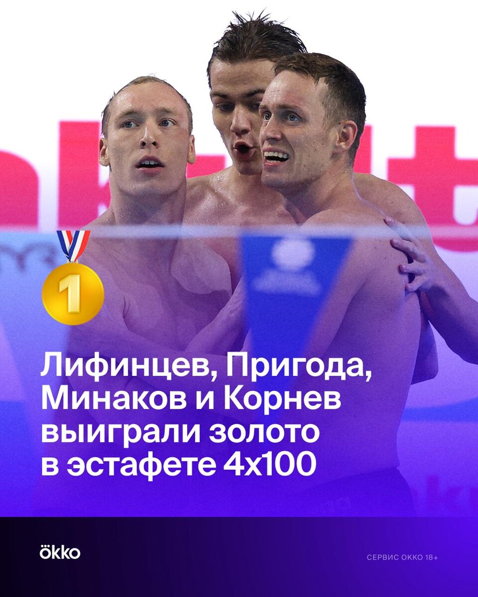 В ответ на пост Еще одно золото! Теперь в комбинированной эстафете 🤩 Лифинцев, Пригода, Минаков и Корнев установили новый рекорд чемпионатов мира. Браво, парни 🔥