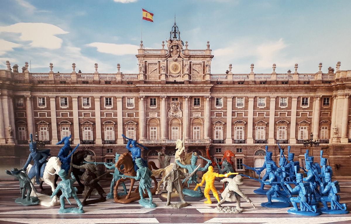 23 марта 1808 года Мадрид был оккупирован войсками Наполеона. Король Карл IV был вынужден отречься в пользу своего сына Фердинанда VII, однако Наполеон заманил обоих на французскую территорию и взял под арест в городе Байонна. Попытка командующего французскими войсками Иоахима Мюрата вывезти из страны дочь и младшего сына Карла IV привела к народному восстанию в Мадриде. Восстание началось 2 мая 1808 года перед Королевским дворцом в Мадриде, где с утра начала собираться толпа горожан. Собравшиеся вошли в здание, чтобы предотвратить высылку дочери Карла IV. Мюрат прислал батальон гренадеров из состава императорской гвардии и артиллерийские расчёты. На фото запечатлен момент подавления восстания гренадёрами на дворцовой площади перед Королевским дворцом в Мадриде. Артиллерия открыла огонь по собравшейся толпе, и восстание начало охватывать другие части города. Мюрат объявил военное положение и ввёл большую часть своих войск внутрь города, начались ожесточённые бои вокруг Пуэрта-дель-Сол