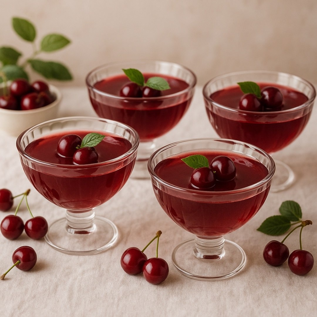 Вишнёвое желе Ингредиенты ⤵️ 🔸Вишня – 500 г 🔸 Сахар – 150 г 🔸 Вода – 500 мл 🔸 Желатин – 20 г 🔸 Лимонный сок – 1 ст. л. Приготовление 🍒 1. Если вишня свежая, удалите косточки. Замороженную разморозьте. Пюрируйте блендером или разомните толкушкой. 2. В кастрюле смешайте вишню, воду и сахар. Доведите до кипения, варите 5 минут. Процедите через сито, чтобы убрать кожуру (можно оставить для насыщенного цвета). 3. Залейте желатин 100 мл холодной воды, дайте набухнуть 10 минут. Влейте в горячий вишнёвый сироп, размешайте до полного растворения. Добавьте лимонный сок для баланса вкуса. 4. Разлейте по креманкам или форме, слегка остудите. Накройте пищевой плёнкой и уберите в холодильник на 4–6 часов. Рецепт дня #желе #вишневое_желе #вишня #ягоды #желатин #десерт