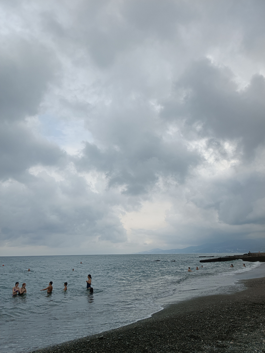 Приветствуем всех гостей нашего канала, особенно наших дорогих и уважаемых подписчиков. Все кто следит за публикациями на нашем канале наверняка знают о сильной жаре накрывшей наши края в июле месяце. Конечно назвать такую погоду аномальной нельзя. Тем не менее наверно последние три недели, а может быть и больше температура воздуха после полудня в тени не опускалась ниже 30 градусов. Вода в море прогрелась до невероятных + 29-ти градусов! Вот это уже можно назвать аномалией. Обычно в этот период температура воды колеблется от 26 до 28 градусов. Дождик синоптики нам пообещали ещё накануне. Но небесные хляби разверзлись только 3 августа после обеда. Прошел небольшой ливень. И хоть у нас в Адлерском районе он длился не более 30-40 минут, воздух заметно посвежел. Тучи над морем начали собираться уже с утра, даже моросил дождичек. Вот посмотрите небольшую галерею с привокзального пляжа, 3 августа первая половина дня. Драматические события, развернувшиеся в Адлере и Сириусе в ночь со 2 на 3