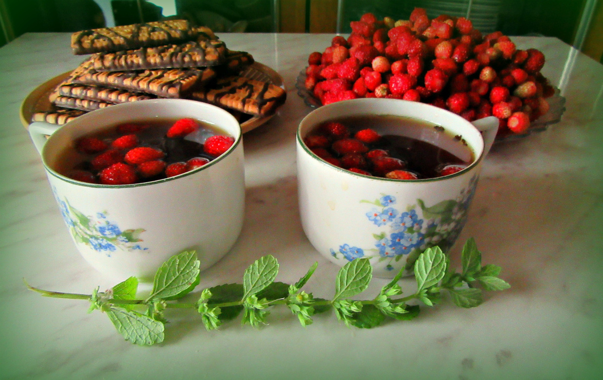Заваривая чай с травами, я нередко смешиваю их с традиционным чаем, чёрным или зелёным. Это как раз тот случай. Напоминаю - прежде чем использовать травы для чая, убедитесь, что у вас нет к ним противопоказаний или индивидуальной непереносимости. Конечно, мелисса (она же лимонная мята) сама по себе травка ароматная, с богатым вкусом, её очень хорошо заваривать и одну. К тому же трава полезная - успокаивает (а потому хорошо такой чай пить перед сном), укрепляет иммунитет, обладает противовоспалительными свойствами, улучшает пищеварение. А кроме всего перечисленного, ещё и снижает давление, особенно при регулярном употреблении. Вот потому-то я и добавила к ней сейчас чёрный чай - чтобы не сбить своё и без того низкое давление)) Тонизирующий эффект чёрного чая должен, по идее, уравновесить такой напиток, сделать его нейтральным. Ну и вкусно это, конечно! Мелиссу я сейчас взяла свежую, просто сорвала на огороде, но есть дома и запас сушёной травки. И, если не ошибаюсь, в аптеках продают па