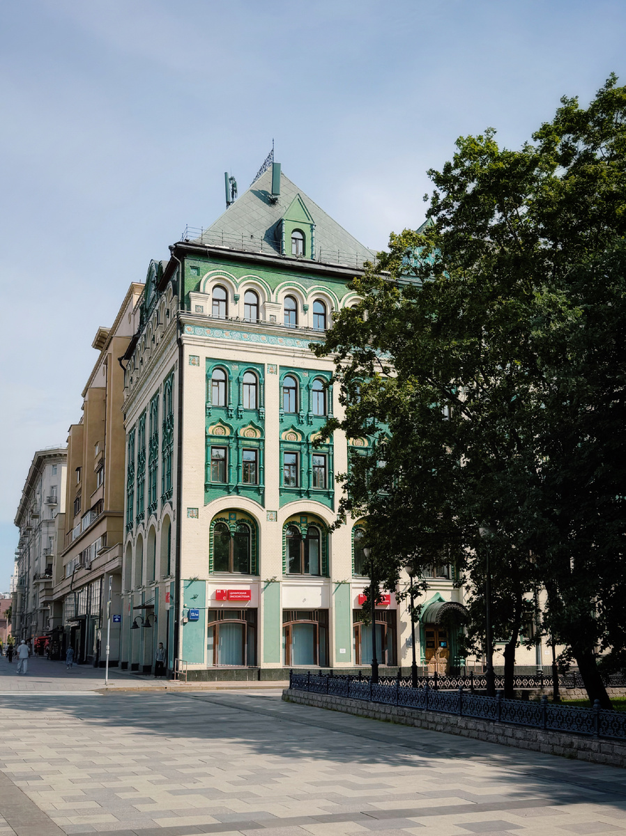 Проект здания в неорусском стиле с элементами модерна для Елены Ивановны Миансаровой выполнил архитектор Сергей Константинович Родионов. Построили дом в 1911-м году. Первый этаж здания занимали различные конторы и трактир, а на верхних этажах разместились комфортабельные квартиры внаём и небольшая гостиница «Рига». Одним из главных украшений здания стали изразцы. Их делали в двух мастерских: "Абрамцево" (принадлежавшая Савве Мамонтову) и "Кикерино" (где работал известный мастер керамического искусства Пётр Ваулин). Благодаря такому оформлению здание часто называют «Дом с изразцами».