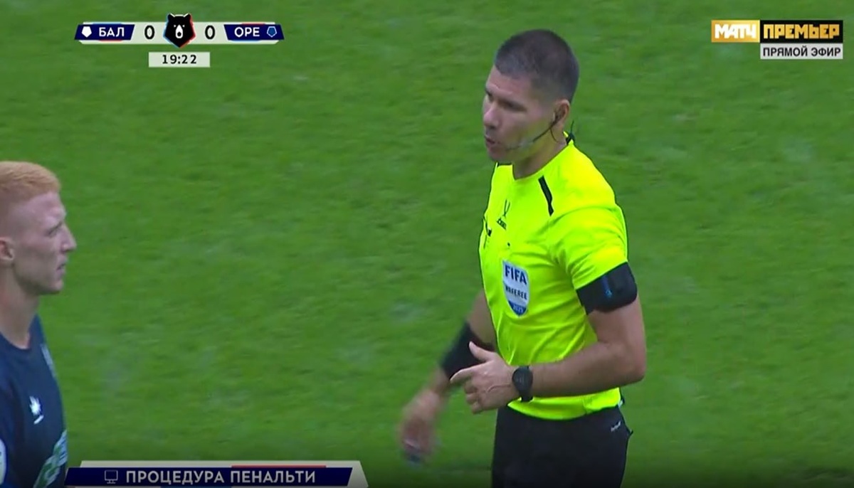 Балтика-Оренбург 20 мин. Правильное решение принимает ВАР в лице Артура Фёдорова и после процедуры проверки пробит 11-м удара. Правильное решение: 11-м удар перебить, так как игрок № 33 команды Оренбург до удар по воротам зашёл в штрафную площадь и первым вступил в единоборства за мяч.