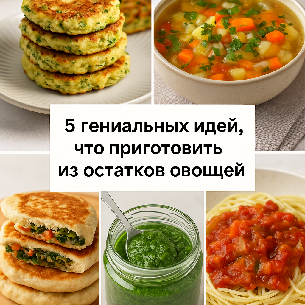 Лето — щедрая пора, когда овощи буквально просятся на кухню. Но как быть, если в холодильнике осталась половина кабачка, чуть-чуть моркови, пару помидоров и чуть увядшая зелень? Не спешите выбрасывать! Эти «остатки» можно превратить в полноценные вкусные блюда. Делюсь проверенными идеями, которые экономят продукты, деньги и радуют вкусом. Подходят: для остатков кабачков, моркови, лука, картофеля, зелени, кусочков перца Ингредиенты (можно варьировать): Как готовить: Натереть овощи на крупной тёрке, отжать лишнюю влагу. Добавить яйцо, муку, соль и специи. Перемешать. Жарить на разогретой сковороде с растительным маслом по 2–3 минуты с каждой стороны до золотистой корочки. 🔹 Вкусно и горячими, и холодными. Отличная альтернатива мясным котлетам! Подходят: мягкие, переспелые помидоры, обрезки томатов Ингредиенты: Как готовить: Обжарить мелко нарезанный лук и чеснок, добавить нарезанные помидоры. Тушить на среднем огне 10–15 минут. Протереть через сито или пробить блендером. Довести до в