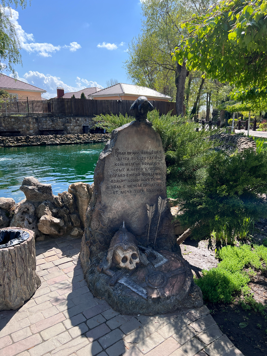 Восхитившись детализацией "Королевства кривых зеркал", мы продолжаем путь по парку. Поражает и приятно удивляет, что в каждом пруду - золотистые и оранжевые рыбы! Посидев в тенечке у нового пруда, мы немного отдохнули от ходьбы и продолжили свой путь на площадь, по пути встретив довольно большой вольер с павлинами. Площадь напоминает по своей тематике городскую площадь средневековья с элементами русских сказок, однако, стоит заметить, на ней не так многолюдно и, кончено же, очень чисто. Атмосфера, как и во всем парке нам очень понравилась: стоят украшенные лавки, продаются всякие вкусности типа трдельника, можно купить чай и, конечно же, сувениры. Можно посидеть, понаблюдать за происходящим вокруг и вкусно перекусить. Мороженое и трдельник были ГИПЕР вкусными. Вкус и толщина шоколада на мороженом была просто неописуемая, а мягкость и свежесть трдельника непревзойденными. Пока это самые запоминающиеся вкусовые сладкие пробы из всех поездок, которые были. Очень рекомендую попробовать - н