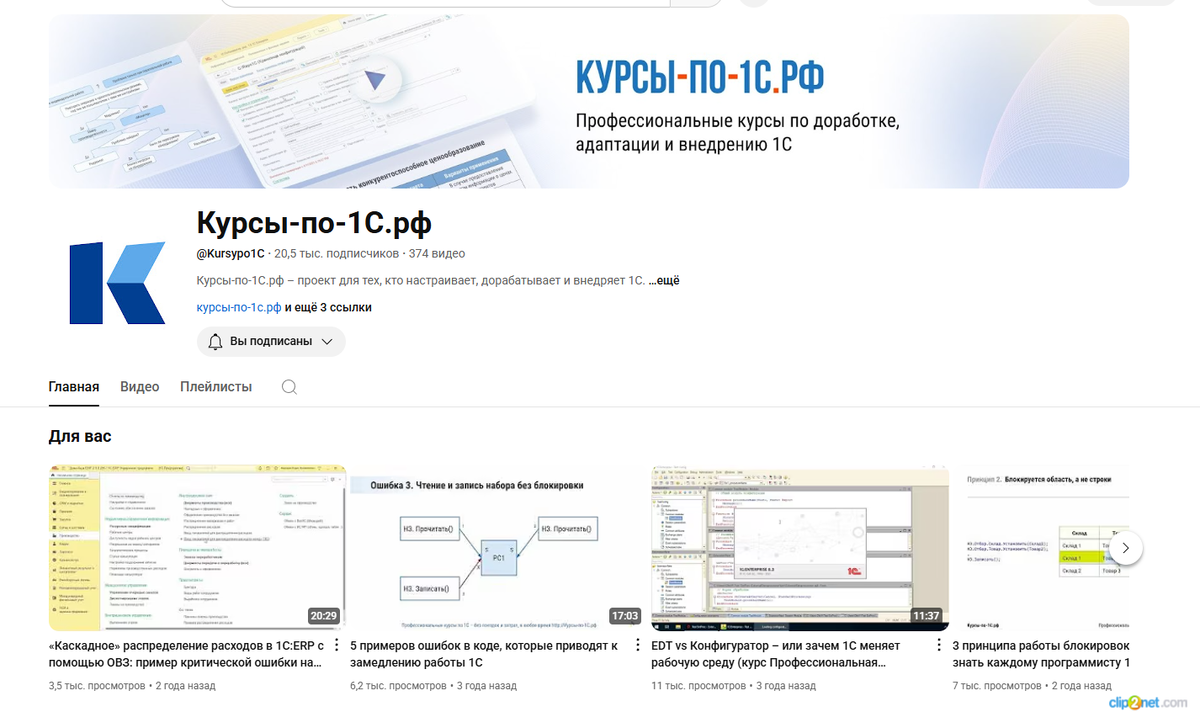 Ссылка ниже: https://www.youtube.com/@Kursypo1C
