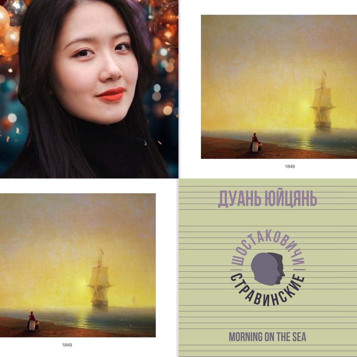 Знакомим вас с сочинением «Morning on the sea» композитора Дуань Юйцянь, которое вдохновлено картиной Ивана Константиновича Айвазовского «Утро на море»! Дуань Юйцянь (Duan Yuqian) родилась в 2001 году в Китае, является студенткой 5 курса МГК имени П.И. Чайковского, класс профессора Ю.В. Воронцова. Дуань Юйцянь — лауреат многочисленных Всероссийских и международных конкурсов по композиции. Среди них: