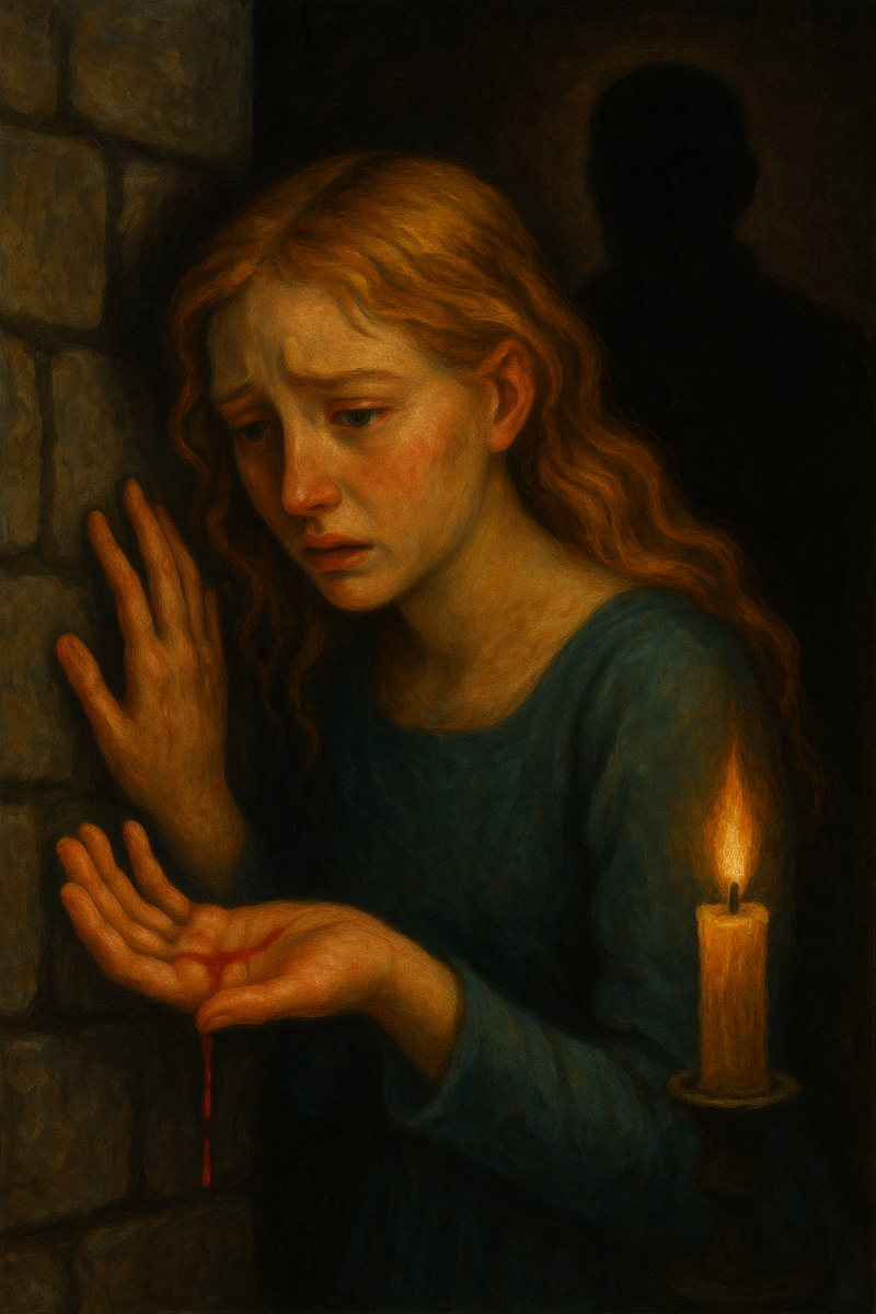 Опасаясь, что её заметят, Элизабет вжалась спиной в каменную стену и затаила дыхание.