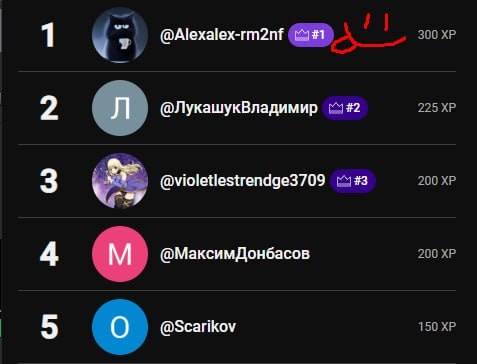 В ответ на пост 📣Итоги по самым активным в чате: Доблестный модератор заказывает одну песню бесплатно на следующей трансляции за своё заслуженное первое место! ⚠️П,С, если вам зайдет такая приколюха - сделаем минимальный порог в 200ХР и топ 😔первые три места), если преодолели этот порог, получат по одной песне на следующий стрим. Жмакаем огоньки. Чем больше 🔥 - тем выше шанс что я введу эту активность. 🐜🏃🔥