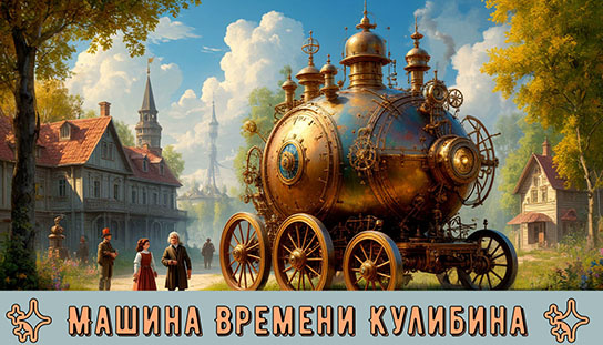 Иван Петрович Кулибин, знаменитый русский механик XVIII века, давно мечтал построить машину времени. Однажды ночью, листая старые чертежи, он случайно обнаружил странный механизм, оставшийся от одного из экспериментов Леонардо да Винчи. Это была необычная шестерёнка, способная накапливать энергию времён. Решив рискнуть, Кулибин присоединил шестерёнку к своему новому проекту — аппарату, внешне похожему на гигантского паука. Когда устройство было собрано, он активировал его, вставив кристаллы редкого минерала, найденного в Сибири. Аппарат ожил, издав громкий гул, и вдруг пространство вокруг стало искривляться. Раздался хлопок, и Кулибин оказался в будущем — в городе Москва 2025 года. Здесь всё выглядело иначе: дома сияли разноцветными огнями, машины летали над землёй, а люди носили одежду из ткани, отражающей свет. Однако не успел Кулибин насладиться видами будущего, как услышал сигнал тревоги. Из ниоткуда появились роботы-заграждения, патрулировавшие улицы города. Один из роботов замети