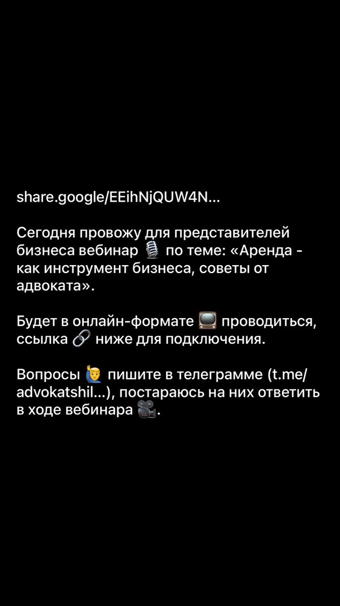 Сегодня провожу вебинар 🎙️для бизнеса по теме Аренды