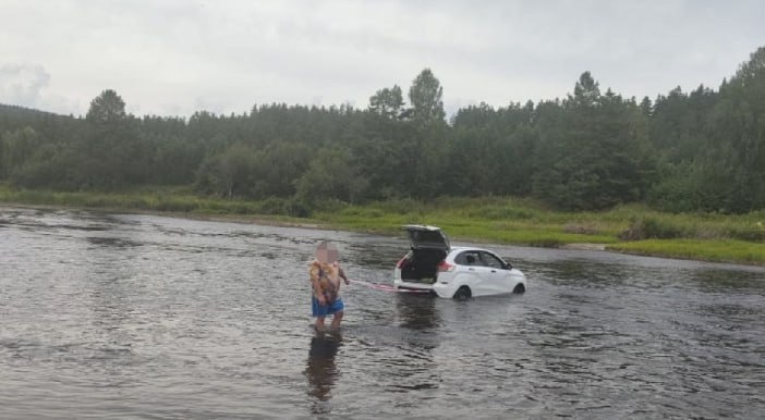 В Белорецком районе семья решила проверить реку Белая на проходимость — прямо на автомобиле. Попытка пересечь водную преграду вброд закончилась вполне ожидаемо: машина застряла на середине, внутри — двое взрослых и пятилетний ребенок.