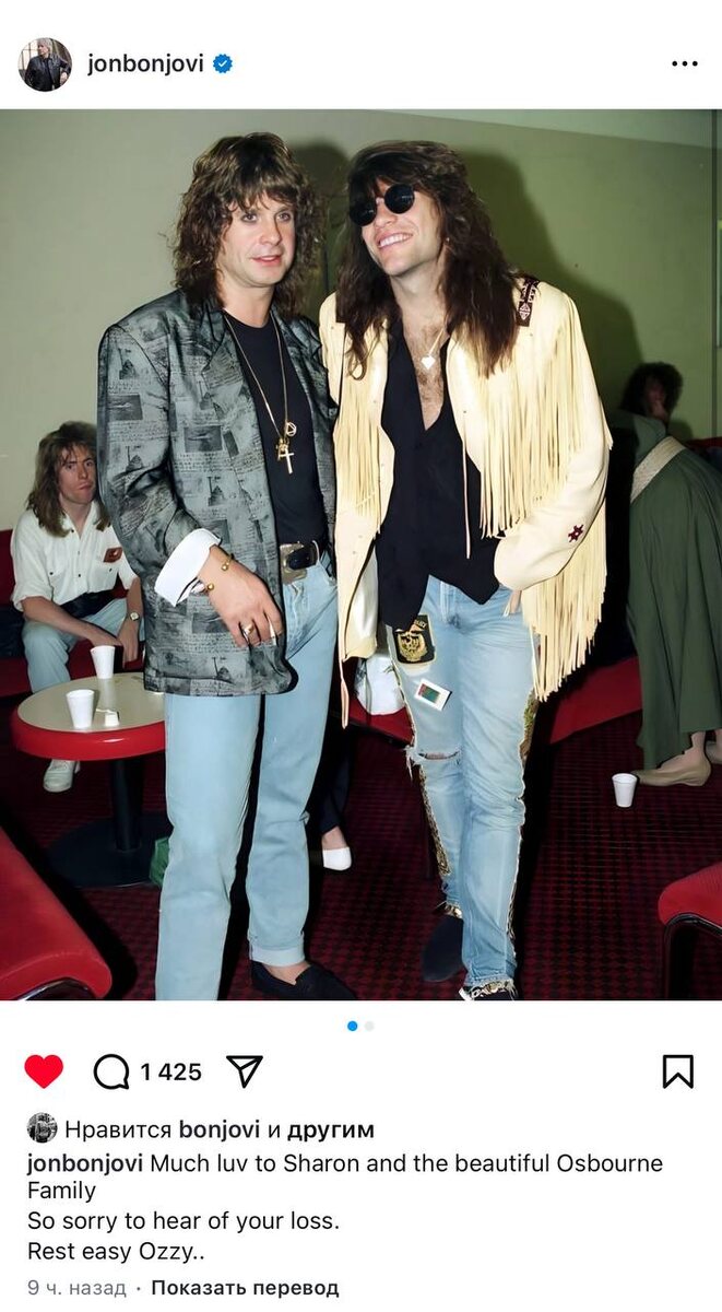 Вечер, по многим причинам, выдался эмоциональным. Как следствие - ночные кошмары в жанре «апокалипсис». Рок-звезды продолжают выкладывать фото с Оззи, пишут, что несмотря на погоняло “Prince of Darkness” - это был милейшей души человек))). На фото Джон мой Бон Джови и Оз. Поймала себя на мысли, что когда не станет Джона (тоже ведь уже не мальчик), для меня это будет трагедия на уровне семейной. Музыкант, который «ведет» меня всю жизнь, на концерте которого я была дважды, чья музыка меня спасала, лечила и заставляла преисполниться миллионы раз, чья музыкальная цитата, в конце концов, у меня запечатлена на руке. Грустны все эти уходы легенд 💔