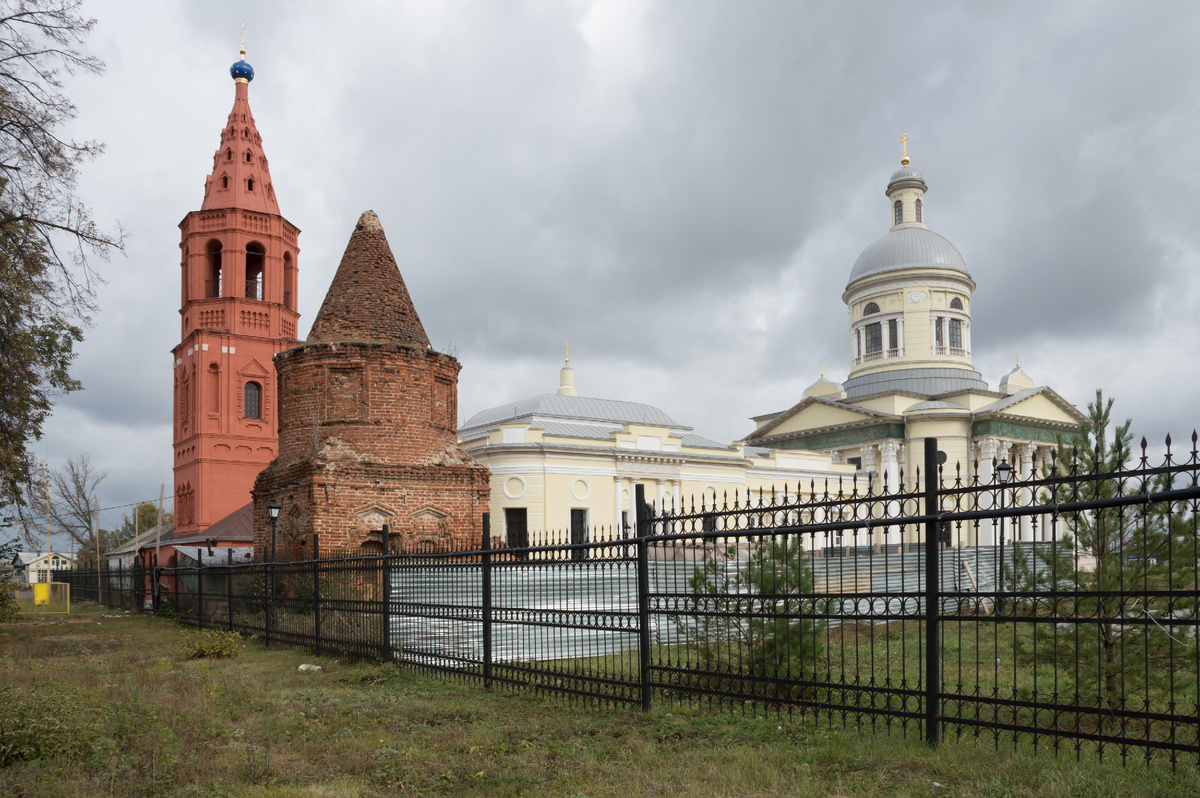 Никольский собор был построен в 1736 году по указу императрицы Анны Иоанновны, взамен обветшавшей деревянной церкви. Епифань была с 16 века военно-административным центром, в городе стоял гарнизон стрельцов и прочих военных людей. К 18 веку защита от татаро-монгольских набегов была уже не актуальна и город стал просто административным центром. Но крепость вокруг Никольского собора все равно построили новую. Вы видели башню на фотках выше, это как раз остаток от той крепости.