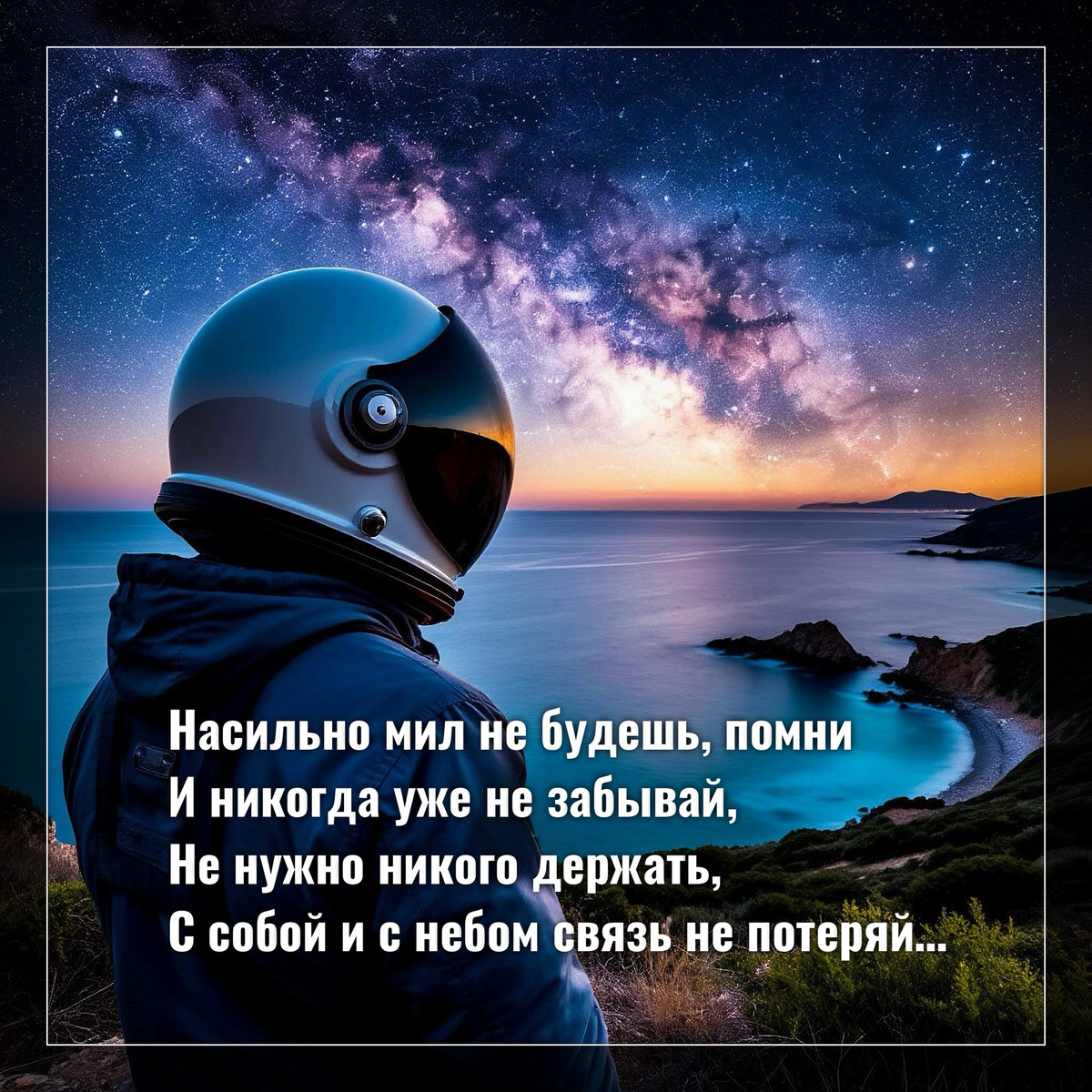 Насильно мил не будешь, помни И никогда уже не забывай, Не нужно никого держать, С собой и с небом связь не потеряй, Твоё из жизни не уйдет и не исчезнет, А не твоё «отвалится» с годами, И кто бы что ни говорил, А в «одержимости» все виноваты сами. Так стоит ли держаться за других, А стоит ли себя ломать, Когда в погоне за «любовью не своей» Ты будешь только Душу предавать. Порой так важно разжимать кулак, В которой мир хочешь вместить, В нём точно много не удержишь, Кого потом тогда винить? Когда отпустишь всё, вдруг осознаешь, Насколько в жизни ты богат, Ведь отпуская всех и всё, Не встретишь никогда преград, Насильно мил не будешь и не надо, К себе всегда с любовью относись, Ведь ближе будет только Бог, С иллюзиями наконец простись.