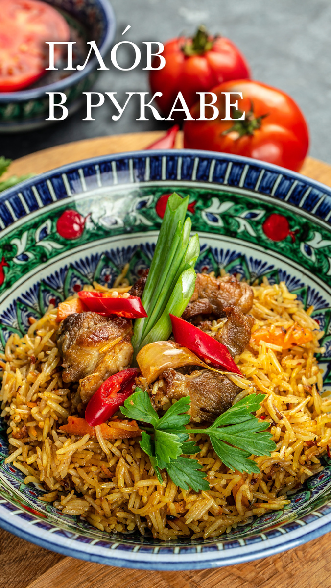 ПЛОВ В РУКАВЕ ДЛЯ ЗАПЕКАНИЯ 🍚🍖 Плов, приготовленный в рукаве для запекания в духовке, — отличный способ побаловать себя и близких ароматным, вкусным и рассыпчатым блюдом, не тратя много времени у плиты. Такой способ приготовления позволяет сохранить сочность ингредиентов и раскрыть натуральный вкус специй. Ингредиенты: - Рис – 1 стакан - Мясо (баранина, говядина или курица) – 300-400 гр - Морковь – 2 шт. - Лук – 1-2 шт. - Чеснок – 1 головка - Растительное масло – 3-4 ст. л. - Вода – около 1,5 стакана - Соль – по вкусу - Черный молотый перец – по вкусу - Зира (кумин) – 1 ч. л. - Барбарис (по желанию) – 1 ч. л. - Зелень (петрушка, укроп) – для подачи Приготовление: 1. Рис хорошо промойте в холодной воде до прозрачности. Замочите на 20-30 минут. 2. Мясо нарежьте небольшими кусочками. Морковь нарежьте соломкой, лук – полукольцами. 3. В миске смешайте мясо, морковь, лук, растительное масло, соль, перец, зиру и барбарис. Тщательно перемешайте. 4. Выложите смесь в рукав для запекания. Сверх