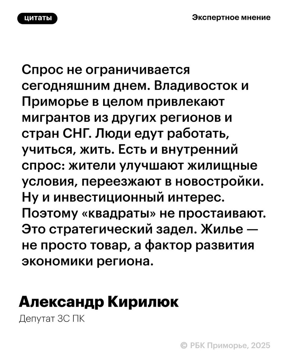 😍🥰 Спрос на жилье в Приморье не ограничивается сегодняшним днем, считает депутат ЗС ПК Александр Кирилюк