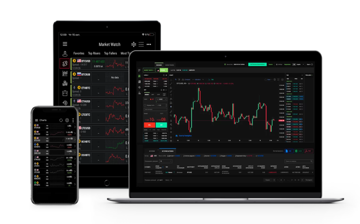 Через приложения можно отправлять рыночные и лимитные приказы, управлять неторговыми поручениями, отслеживать состояние портфеля и открытых позиций с маржинальными показателями.