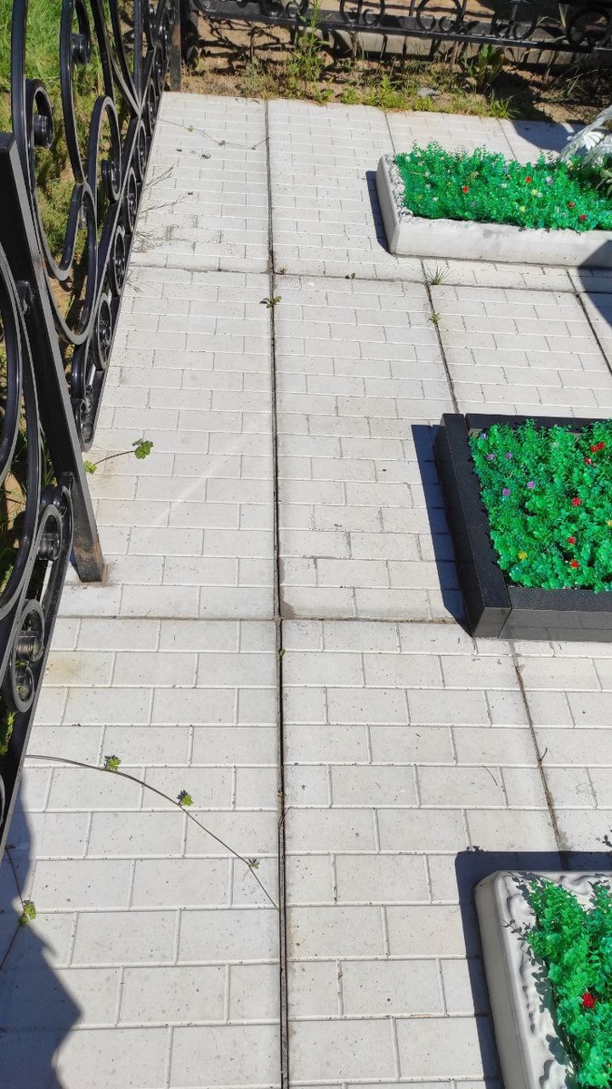 Ещё в 2010 г мы выкопали корни сорняков, застелили пленку в ограде и чуть шире и сверху искусственный газон, зелёную травку, прижали металлическими скобками, чтобы держалось. У мамы новое кладбище, там деревьев нет, солнце, и сорняков меньше. У бабули старое кладбище, там рядом есть деревья и больше листвы, веток. Они падают, перегнивают и растут сорняки. Вообщем покрытие у нас пришло в негодность и я решила заказала благоустройство могил. Укладку плитки, новую ограду бабушке с папой. Видела как сделано рядом и обратилась к этой же бригаде. Жду теперь результат работы по фото. Думаю всё будет хорошо. Ухоженно точно. Потому что приехать каждый год не всегда получается. На фото образец, как будет у моих родственников👍