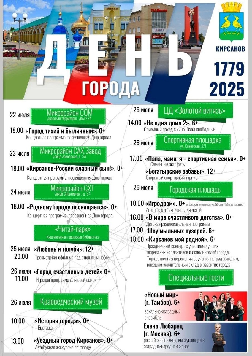 В субботу, 26 июля, наш город Кирсанов будет отмечать свой день рождения