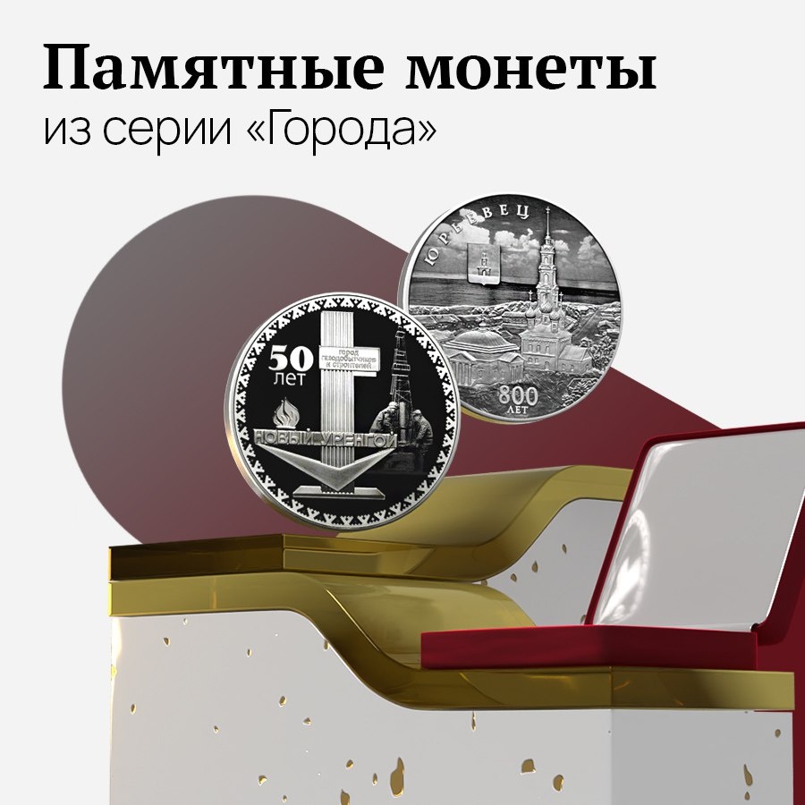 🪙В каталоге Челябинвестбанка появились две памятные монеты из серии «Города», посвященные 800-летию г.Юрьевец и 50-летию со дня основания г. Новый Уренгой. Монеты выплавлены из серебра, качество — пруф, номинал — 3 рубля. Юрьевец, расположенный на берегу Волги, был основан в 1225 году князем Юрием Всеволодовичем. До 1797 года официально назывался Юрьевец-Повольский (в честь Георгия Победоносца). Считается одним из экологически чистых районов центральной России. На реверсе монеты изображен герб города и Георгиевская площадь с храмами на фоне Волги. Вверху — надпись «Юрьевец», внизу — «800 лет». Новый Уренгой был основан в 1975 году. Причина — освоение Уренгойского месторождения, которое дает России примерно 60% природного газа. Название города переводится как «глухой, дремучий». На реверсе изображена стела с надписями «Новый Уренгой» и «Город газодобытчиков и строителей». На фоне — рабочие с боровой установкой, вверху - надпись «50 лет». В Челябинвестбанке есть и другие монеты из се