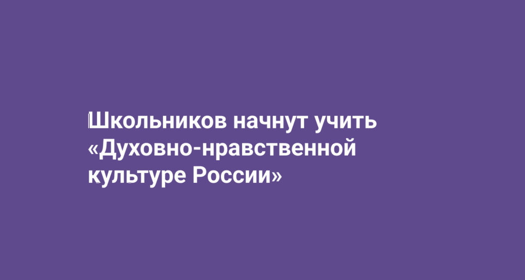 Школьников начнут учить «Духовно-нравственной культуре России»