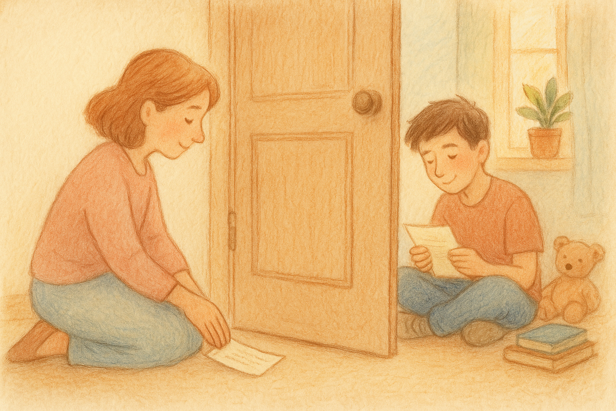 Мы начали с двух инструментов: “я‑сообщений” и «письма‑буфера». Через шесть недель Марина прислала фотографию: Лёша держит листок «МАМ, Я НЕ ВИНОВАТ, ЧТО ОПЯТЬ ЗАБЫЛ БУТЫЛКУ ДЛЯ ВОДЫ, НО СПАСИБО, ЧТО НАПОМНИЛА». Бумага под магнитом на холодильнике, дверь цела. Марина сказала: «Он впервые написал мне, а не хлопнул. Значит, услышал».