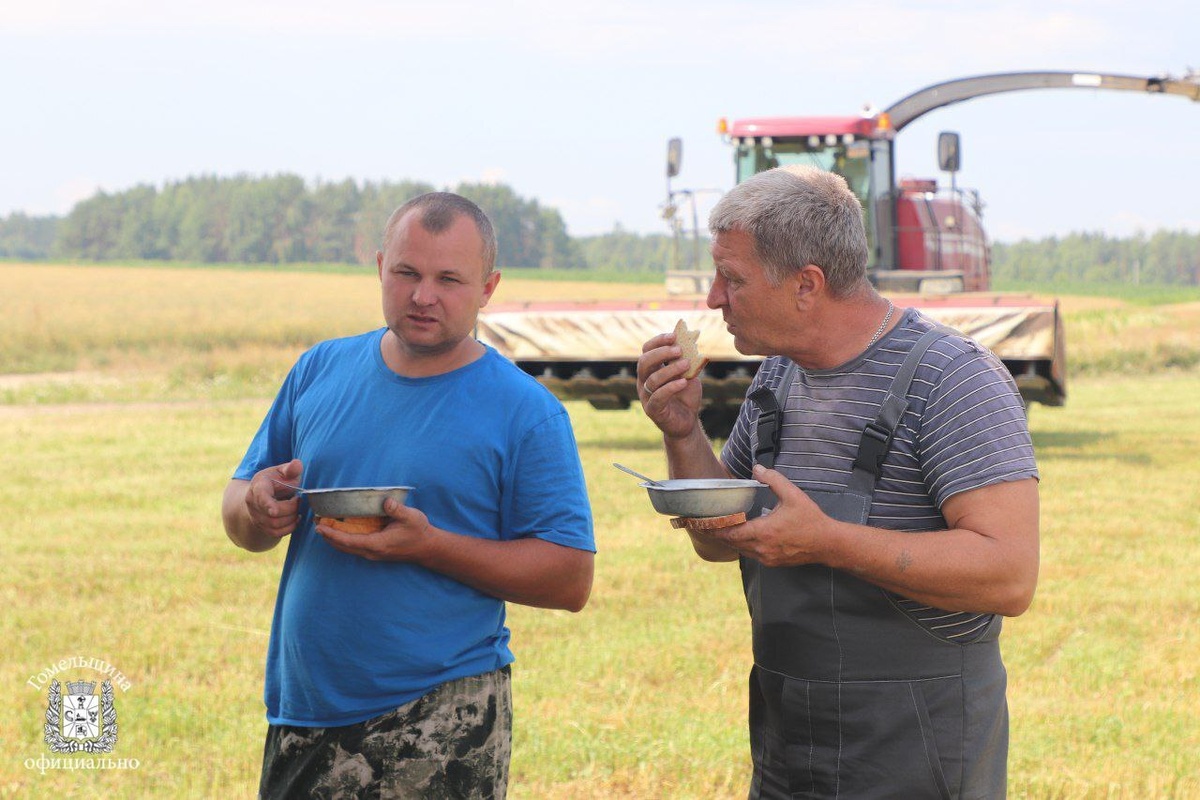 В Телеграм-канале исполкома Гомельской области показали меню, которым кормят комбайнеров во время уборки урожая прямоту поле. В TikTok также нашлись видео с блюдами, которые предлагают участникам "битвы за урожай". Так чиновники Гомельской области похвалились, что комбайнерам одного из агропредприятий привозят рассольник, компот с булочкой, салат и кашу с котлетами. В администрации области не уточнили, идёт ли речь только об обеде, или в рацион входят ещё завтраки и ужины (водители техники во время уборки урожая работают в поле с самого утра и до позднего вечера). ... Продолжение читайте тут. (Или тут.)