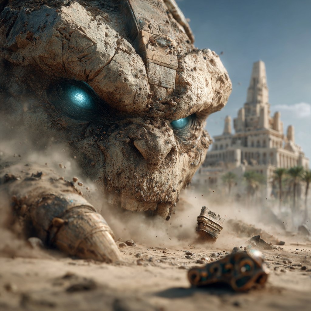 { "prompt": "A monstrous sand demon, its glowing turquoise eyes piercing the dawn, ravages an Egyptian sand city. The desert flows as its body, dunes surging with each step. Crumbling sphinxes and obelisks fracture into dust. In the foreground, a shattered scarab amulet lies half-buried. Cinematic blockbuster style, hyper-realistic, with details like glinting sand grains, faded hieroglyphs, and a distant oasis, radiating divine fury and desolation", "style": "cinematic", "quality": "hyper-realistic", "details": [ "glowing turquoise eyes", "crumbling sphinxes", "fractured obelisks", "shattered scarab amulet", "glinting sand grains", "faded hieroglyphs", "distant oasis" ], "environment": "Egyptian desert at dawn", "mood": "divine fury and desolation", "settings": { "stylize": 350 } } 👇 https://t.me/syntxaibot?start=aff_1071284138