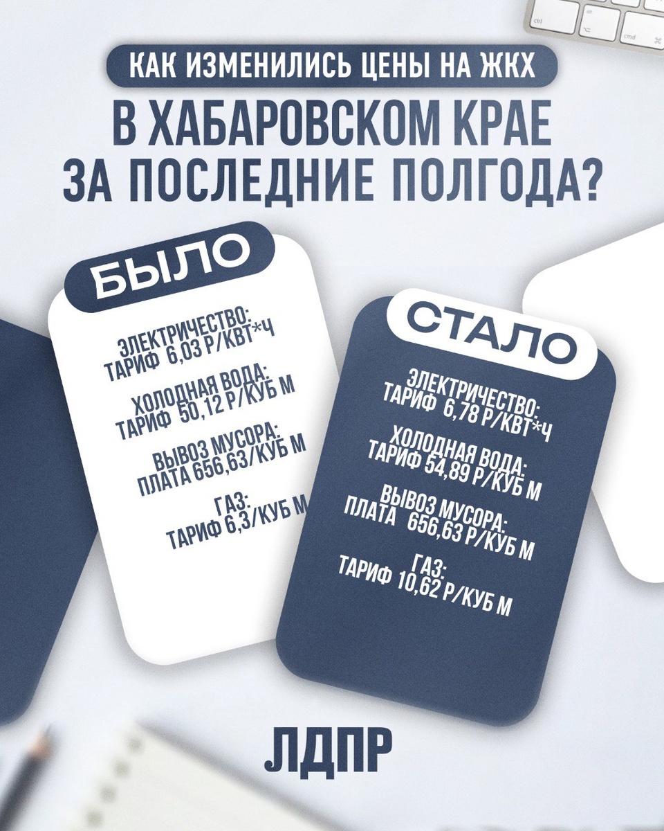 ЛДПР начинает месяц контроля цен на ЖКХ в Хабаровском крае! 🔍 С 1 июля тарифы на коммуналку в России снова растут — в среднем на 11,9%. Для многих семей это не просто цифры, а реальная угроза бюджету. ⚡ Мы запускаем Месяц контроля цен на ЖКХ. Цель — выявить случаи необоснованного роста тарифов и добиться публичного аудита ценообразования в сфере ЖКХ. 📢 Каждый случай важен! Если у вас есть вопросы к своей квитанции, подозрения в завышенных тарифах или жалобы на управляющую компанию — 📲 пишите в наш бот: @ldpr_pochestnomy_bot Недобросовестные УК не должны обогащаться за счёт обнищания русских семей. ЛДПР не даст превратить рост тарифов в норму!