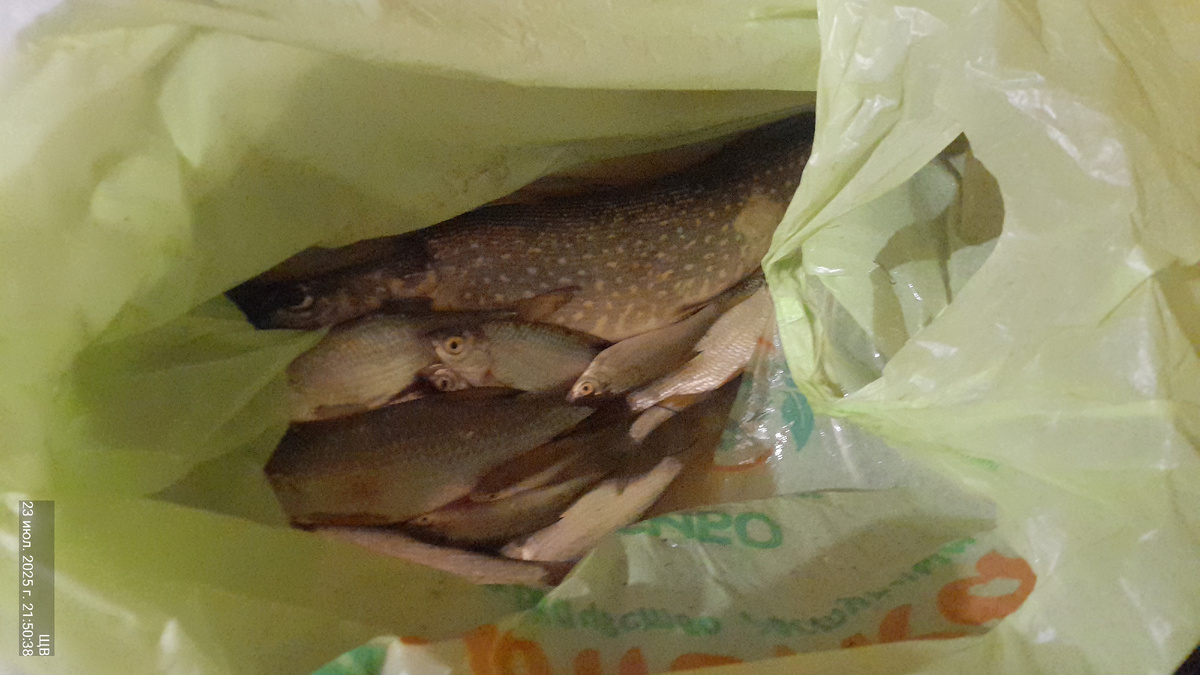 Плавали до шести часов. Немного и поналовили. Серега даже щучку поймал на 700 грамм. Я хорошую плотвицу. Остальное кошкам. Но довольные...
