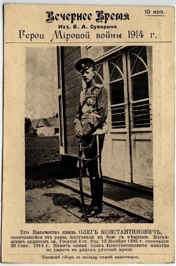 Князь Олег никогда не узнал, что в 1915 г., подкошенный утратой, безвременно умрет его отец, великий князь Константин Константинович, поэт К.Р.