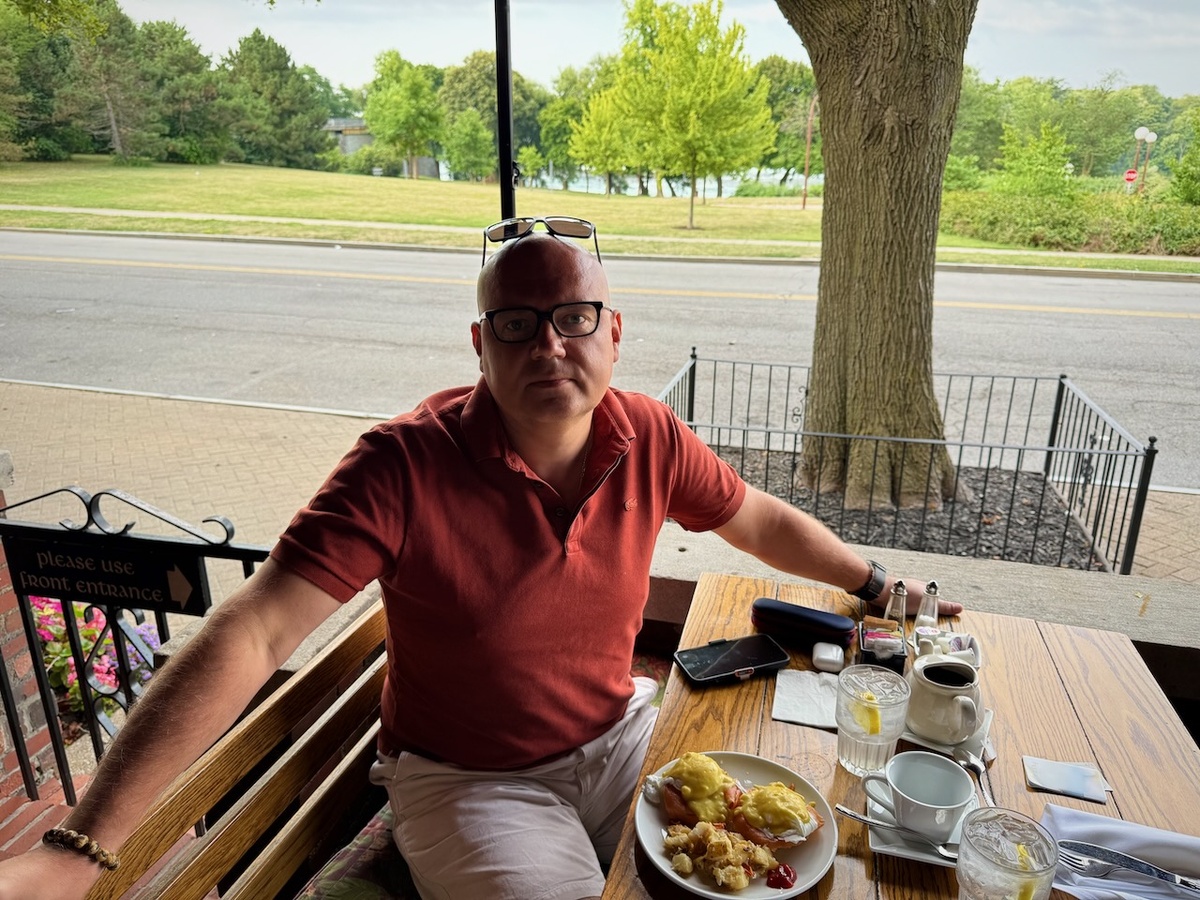Приходим на завтрак, делаем заказ, и только когда официантка несколько раз произносит «хорошо», мы понимаем, что что-то не так) Девушка оказалась родом из Казахстана, так что опять мило пообщались на родном языке. После завтрака мы все-таки повторили вчерашний аттракцион - кораблик. Ну невозможно было отказать себе в этом удовольствии - восторг, просто детский восторг! Забыл вчера показать всю степень погружения в Ниагарский водопад - просушивать пришлось даже телефон🤣 потому что при попытке его зарядить он стал ругаться, что внутри него вода. Вернулись в отель, собрали вещи, загрузились в машину и выехали из Ниагара Фоллс в 10.50. Дорога ожидалась не долгая, до городишка Mentor-on-the Lake, расположенного на одном из Великих озер - озере Эри. Почему выбрали его? Да просто так, не хотелось останавливаться в крупном городе. А посмотреть на пляж озера Эри хотелось. При выезде заехали на заправку. Бензин стоит 3,19 за галлон, если переводить в рубли и литры, то 67-68 рублей за литр. Почу