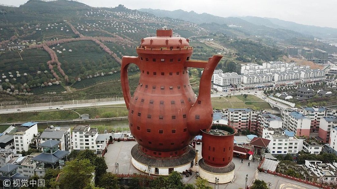 Вы думаете, видели в Китае всё? Ладно, а как насчёт чайника высотой с 25 этажей, в котором можно переночевать, сходить в музей и выпить чай на крыше? Звучит как фантазия архитектора после трёх литров пуэра, но это реальность. В провинции Гуйчжоу, среди зелёных холмов, вдруг вырастает гигантский чайник. Настолько гигантский, что он попал в Книгу рекордов Гиннесса. И нет, это не просто арт-объект для туристов. Это целый мир — со своей историей, вкусом и видами, от которых кружится голова. Представьте: едете вы по провинции Гуйчжоу, любуетесь зелёными холмами… и вдруг — БАМ! — перед вами вырастает огромный чайник высотой с 25-этажный дом. — "Это шутка?" — первая мысль.