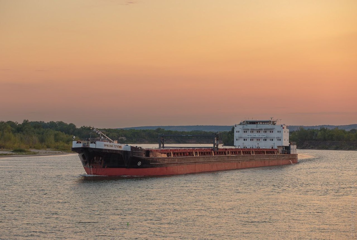 🚢 грузовой теплоход Вячеслав Гогулин, тип Волжский, на Дону в Ростовской области, Усть-Донецкий район