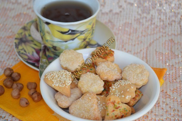 Печенье на маргарине и сметане От автора: Печенье на маргарине и сметане отличная замена печенью из магазина, тем более что ингредиенты в нем используются таки же. Ингредиенты: Маргарин - 125 гр. (комнатной температуры) Сметана - 150 мл. Разрыхлитель теста - 12 гр. (1 ч.л. с горкой) Мука - 320 гр. (2 ст.) Сахар - 50 гр. Кунжут - 20 гр. Кокосовая стружка - 20 гр. Источник: https://rusdinner.ru/page/pechene-na-margarine-i-smetane