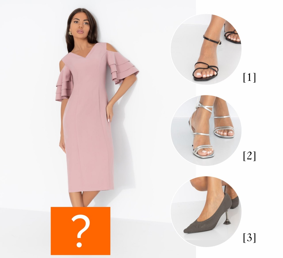 Мы подготовили для вас вот такой женственный наряд, как думаете, уважаемые знатоки, какую обувь добавили к этому образу?