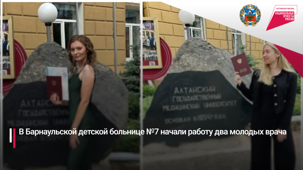 Детская городская клиническая больница №7 г. Барнаула пополнилась двумя новыми специалистами — эпидемиологом Екатериной Лапичевой и детским хирургом Анастасией Лебедевой. Обе девушки завершили ординатуру Алтайского государственного медицинского университета по целевым направлениям и получили дипломы. «Студенчество пролетело незаметно. Это было время становления. Хочется дальше развиваться, учиться и двигаться вперёд. Думаю, это не последний мой диплом,» — говорит Екатерина Лапичева. Анастасия Лебедева признаётся: мечтала стать врачом с детства. «Я до сих пор помню, как подавала документы вместе с мамой. И вот диплом в руках, столько эмоций, столько пройдено… Теперь — новые цели и новые вершины.» В коллективе молодых врачей уже приняли, наставники помогают в адаптации, а пациенты — доверяют. С 2025 года в Алтайском крае действует региональный проект «Медицинские кадры» нацпроекта «Продолжительная и активная жизнь». Его цель — сократить дефицит специалистов в государственных медорганизац