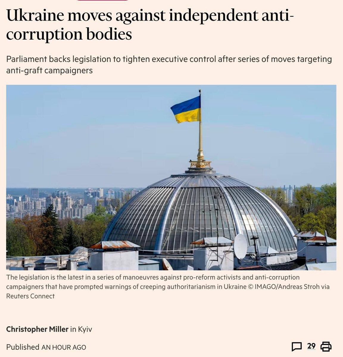 В западной прессе снова звучат заявления об усилении авторитаризма в Украине после принятия законопроекта об ограничении полномочий НАБУ (Бюро занимается противодействием коррупционным и другим уголовным правонарушениям, совершённым высшими должностными лицами и представляющим угрозу национальной безопасности) Financial Times после голосования в Раде за ограничение полномочий Бюро пишет, что это «очередной шаг в серии манёвров против сторонников реформ и борцов с коррупцией, которые вызвали опасения о нарастающем авторитаризме в военной администрации президента и вызвали обеспокоенность у западных союзников Украины». Французская Le Monde пишет, что «украинские депутаты лишают антикоррупционные органы независимости» после «резкой критики ареста чиновника, работавшего в одном из этих органов». Ничего нового… странно, что вообще кто-то обращает внимание на подобное. Там творятся вещи и пострашнее, уверяю вас. 👊 НАСОНОВ 🔴